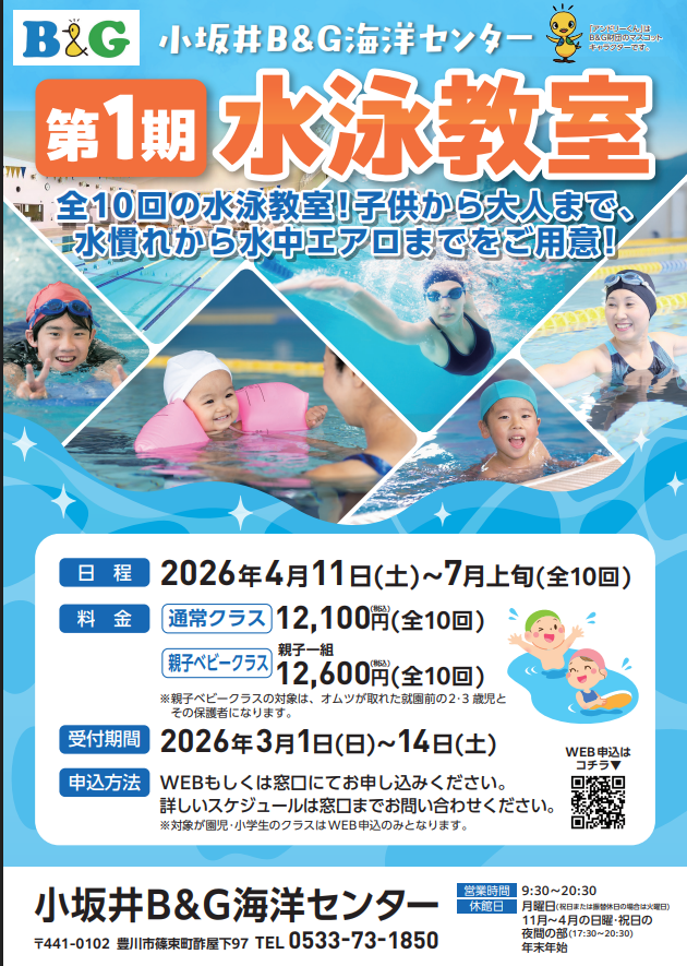 ①2026年度第1期水泳教室 ‥‥ 募集期間:3/1(日)~3/14(土)