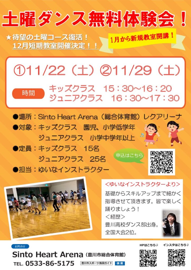 土曜ダンス無料体験会を11/22(土)、11/29(土)の両日で開催致します。