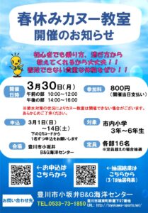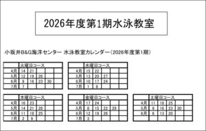 - 木曜日コース(週1回の計10回 11:00~12:00) ※1回参加も受付しております。1回参加についての詳細は小坂井B&G海洋センターまでお問い合わせください。 ※水曜コース2026年度第3期の開催は現在未定です